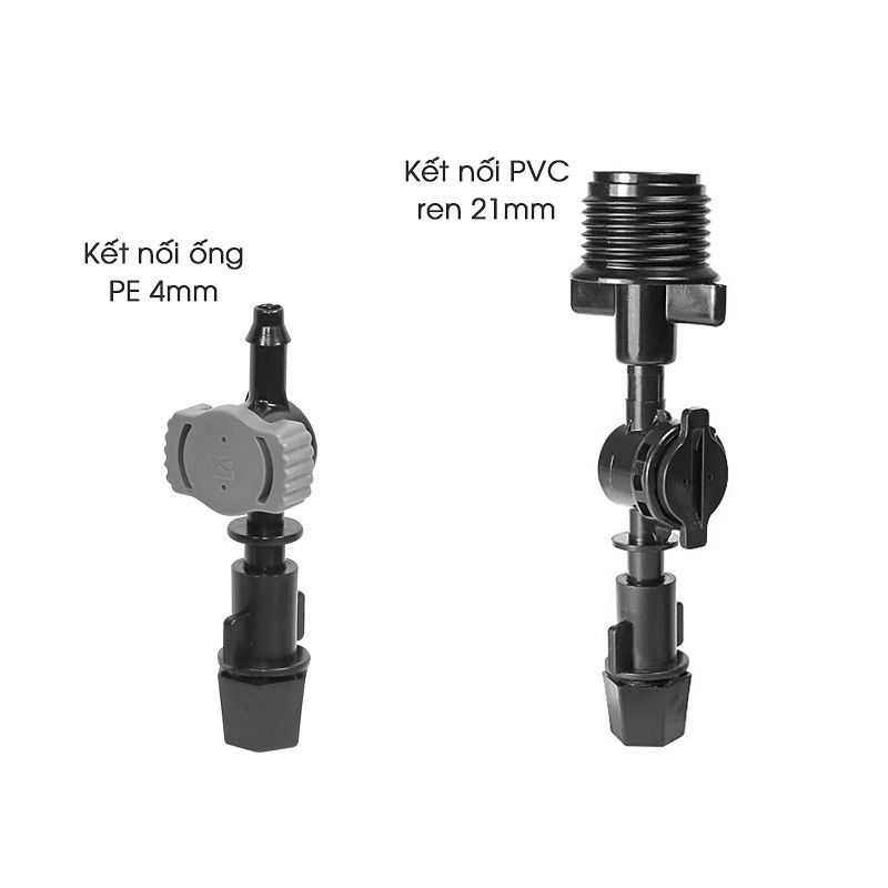 - Kết nối với ống PE hoặc PVC Ren 21.