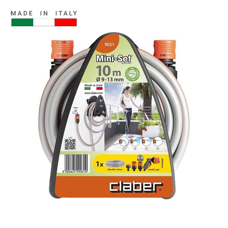 Bộ cuộn ống tưới cây Mini Set Claber 9031 là sản phẩm nhập khẩu từ Ý, thiết kế nhỏ gọn và tiện lợi, phù hợp để tưới cây ở ban công, hành lang, sân thượng, hoặc khu vườn nhỏ.