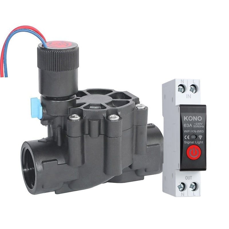 - Công tắc WiFi KONO: Hỗ trợ hẹn giờ bật/tắt hệ thống tưới thông qua ứng dụng cài đặt trên smartphone. Chỉ cần điện thoại có kết nối internet, bạn hoàn toàn có thể điều khiển tưới cây từ xa một cách chủ động.