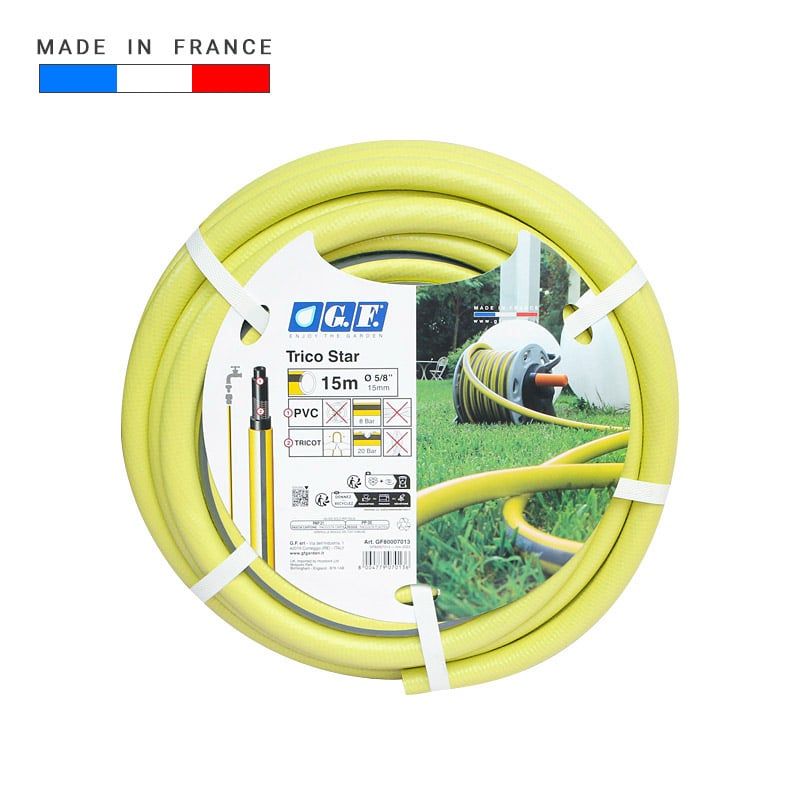 Ống nước mềm GF Trico Star là dòng ống tưới cao cấp của thương hiệu GF (Ý), được sản xuất tại Pháp, thiết kế chuyên dụng cho tưới sân vườn như xe cuộn ống, bộ cuộn ống tưới cây và các hình thức tưới thủ công ngoài trời. Với cấu tạo 5 lớp bền chắc, sản phẩm giúp hạn chế tối đa tình trạng gập gãy, xoắn ống, đảm bảo dòng nước luôn ổn định trong suốt quá trình sử dụng.