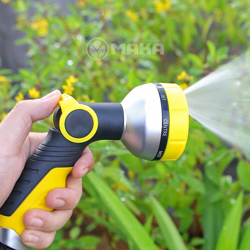 RV-N8 được trang bị 8 chế độ phun linh hoạt, cho phép chuyển đổi nhanh bằng cách xoay đầu vòi. Mỗi kiểu phun đáp ứng một nhu cầu riêng như phun sương tưới hoa, phun mưa cho bồn cây, phun tỏa rộng tưới diện tích lớn hay phun tia mạnh để rửa sân, rửa xe và vệ sinh lối đi.