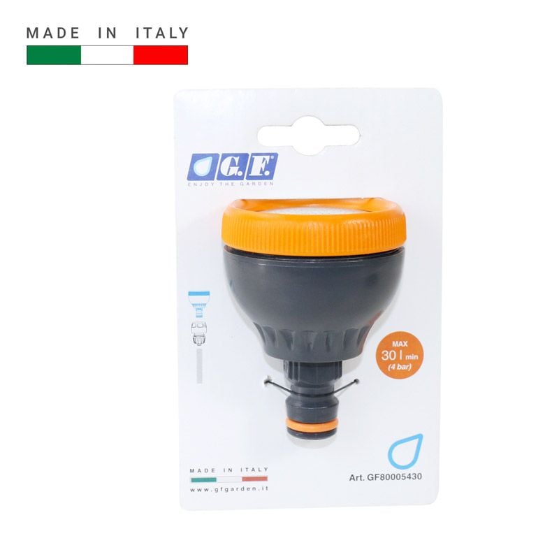 Vòi hoa sen tưới cây GF3430 được thiết kế và sản xuất tại Ý, chuyên dùng cho tưới hoa và rau, lan. Với kiểu tưới phun mưa dạng vòi hoa sen, tạo ra hạt mưa đều và mịn, nên không làm ảnh hưởng đến hoa hay lá của những cây thân yếu.